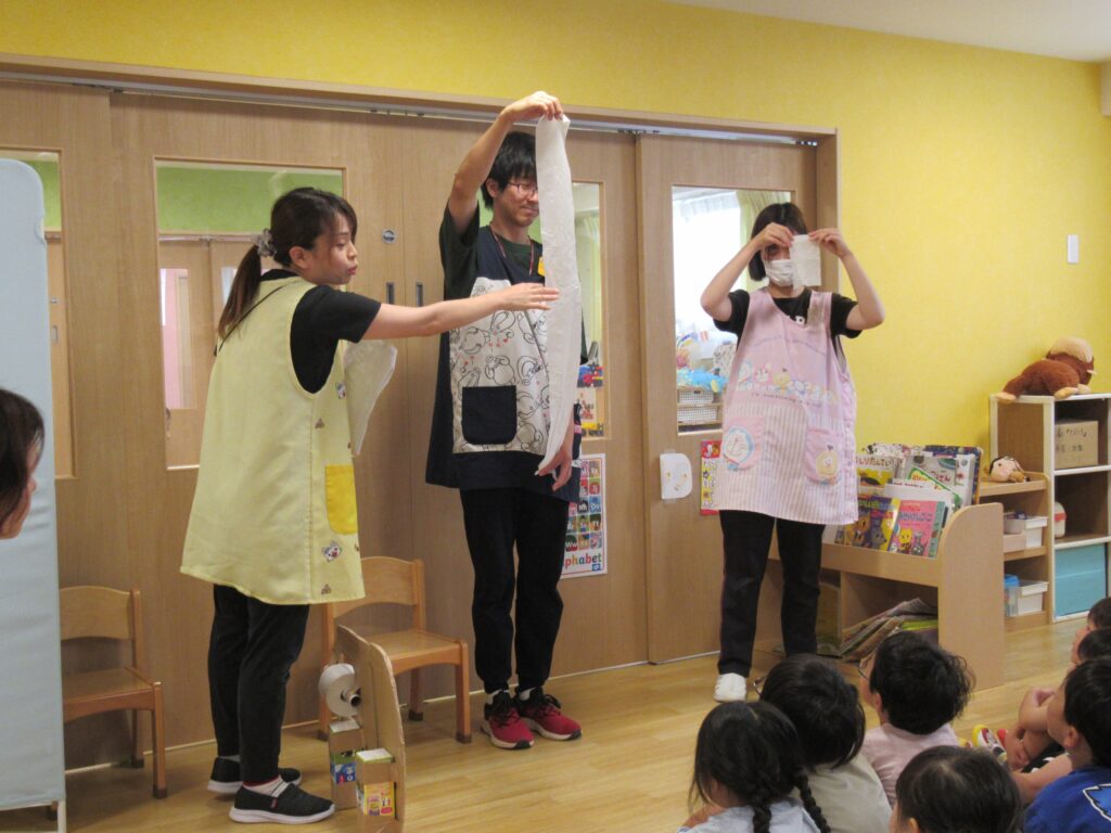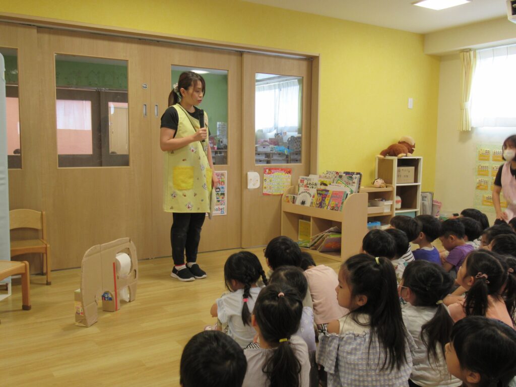 2歳児と幼児組を対象に、看護師による健康教育を行いました