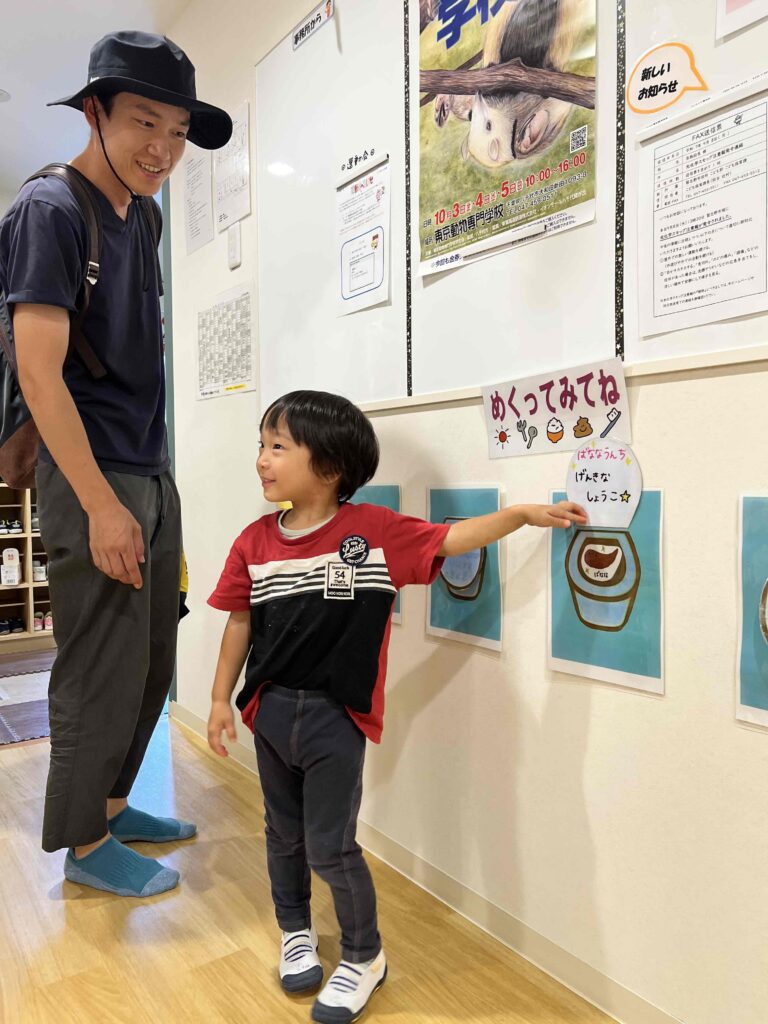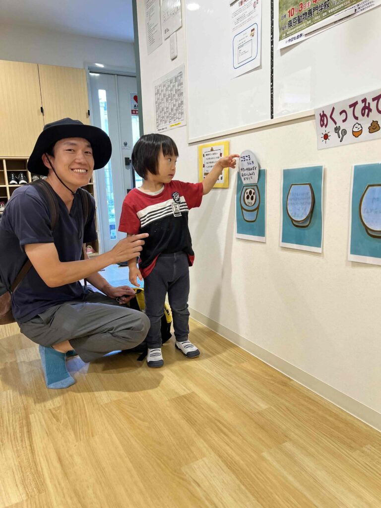 うんちの種類や、どうしたらいいうんちが出るのかななどの話をききました。最初は「うんち」のワードに反応し大興奮でしたが、話が進むとだんだんと真剣な表情になっていきました。子ども達に話をした後は、保護者の方々にもお便りなどでお知らせをしました。1階の廊下脇に、使用した教材を貼りだし、毎日親子で「今日はどんなうんちだった?」「バナナうんちが出るようになんでも食べるんだ」などと親子での会話も楽しんでいます。